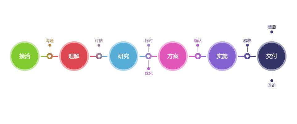 清晰、可視、可持續(xù)改進(jìn)的研發(fā)流程服務(wù),在每個環(huán)節(jié)我們都秉承著打造高品質(zhì)移動互聯(lián)網(wǎng)解決方案的開發(fā)理念。